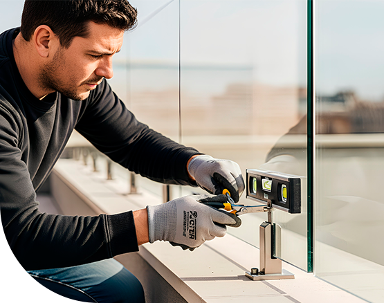 En Rayso trabajamos con vidrio templado o laminado de alta resistencia y anclajes de acero inoxidable de primera calidad. Nuestro equipo técnico especializado garantiza una instalación segura, duradera y perfectamente nivelada en todo Madrid y Toledo.